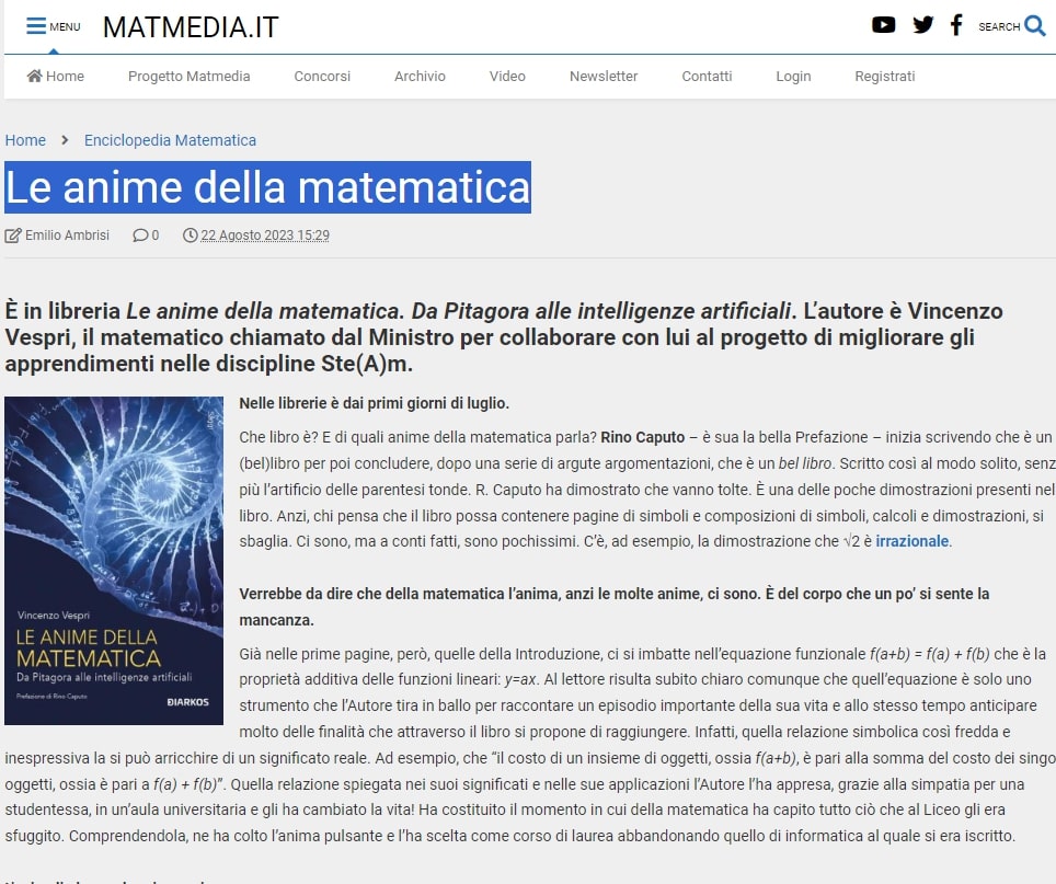 Recensione Libro - Le anime della Matematica - Vincenzo Vespri