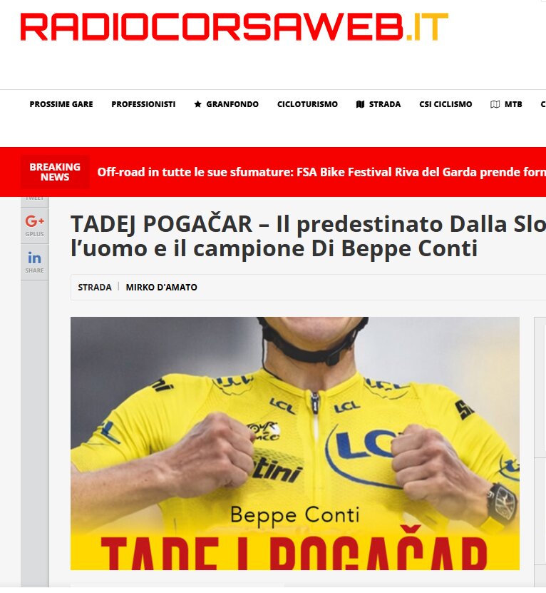 TADEJ POGAČAR – Il predestinato Dalla Slovenia ai trionfi: l’uomo e il campione Di Beppe Conti - Radio Corsa web